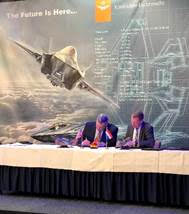 Greg Ulmer, Vice President en General Manager van het F-35 programma van Lockheed Martin, en Rene de Koning, CEO van OneLogistics, ondertekenen de officiële opening van het F-35 Regional Warehouse in Logistiek Centrum Woensdrecht.